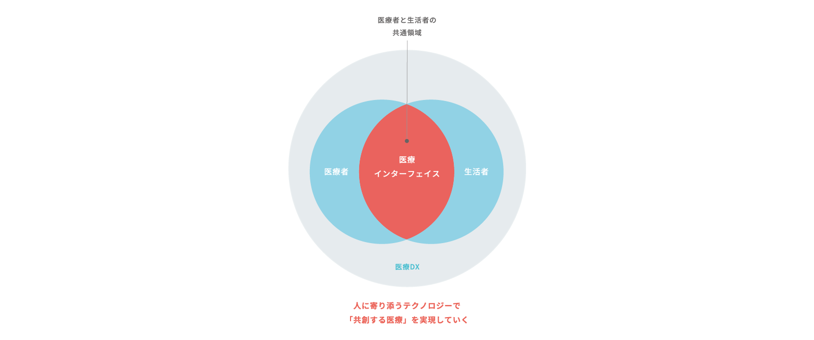 生活者と医療者の共通領域に機能する「医療インターフェイス」が私たちの研究と実装の対象です。両者のコミュニケーションをわかりやすく、スムーズで心地よい体験にしていく。そのためにプロダクトをつくり、改善を繰り返す。「つくること=完了」ではなく社会実装までやる。それが私たちの責務であり、生活者と医療者が共創する医療をレイヤードはつくっていきます。