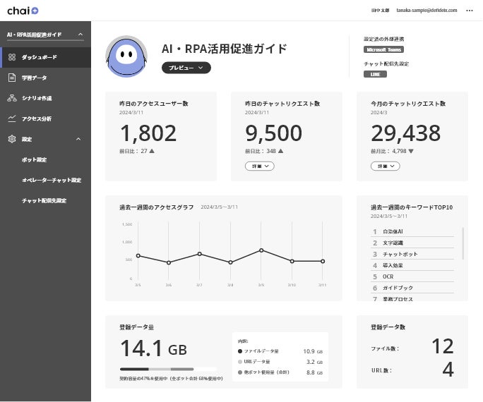 あらゆるフォーマットのデータを解析し、瞬時に情報を提供する革新的なAIチャットサービス「chai+」のローンチを発表