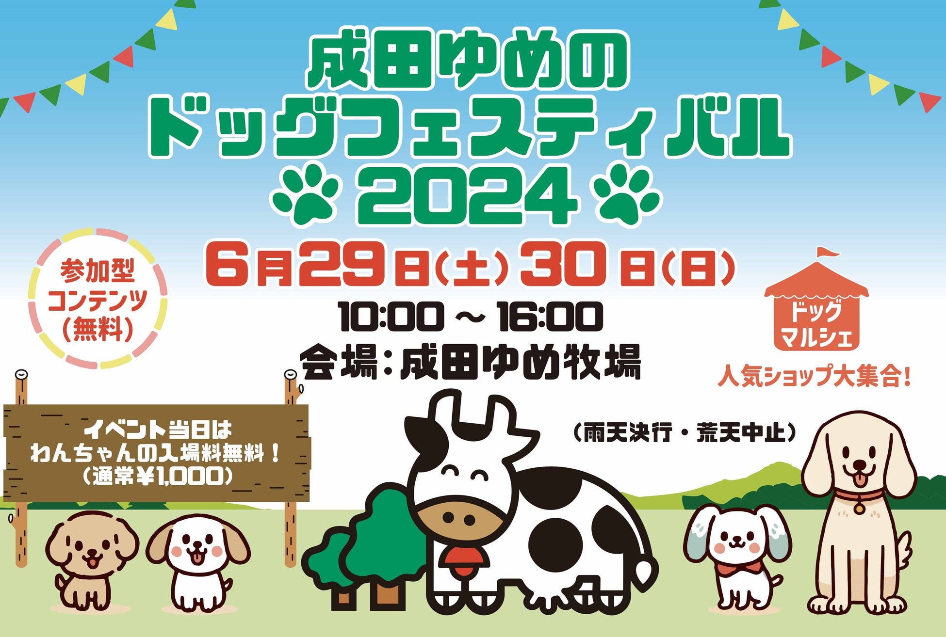 株式会社エーエスピー(本社:東京都中央区)は、2024年6月29日(土)・30日(日)に成田ゆめ牧場 (所在地:千葉県成田市)にて『成田ゆめのドッグフェスティバル』を開催いたします。イベント会場では、ワンちゃんに特化したショップが全国から集結するドッグマルシェや、お手入れサービスなどが登場。更に「成田ゆめ牧場」でも、ワンちゃん入場料が通常1,000円のところ入場無料で楽しめます!大自然に包まれたドッグランやワンちゃんと一緒に乗れる乗り物など楽しめるコンテンツが盛りだくさん!子供にもワンちゃんにも優しい牧場で、ドッグイベント初開催!愛犬と一緒に素敵な時間を是非「成田ゆめ牧場」でお楽しみください。