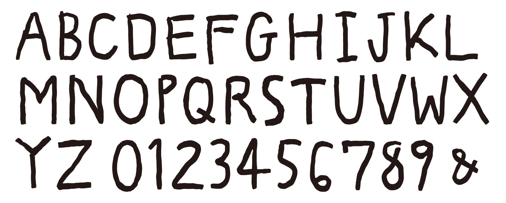 インパクトのある大きめの手描きフォント。アルファベットと数字を最大2文字配置できます。