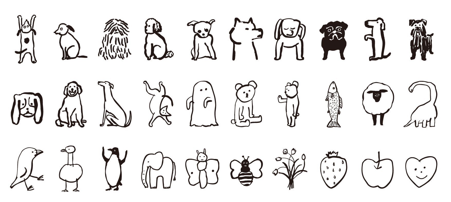 ユーモラスで愛らしい動物、植物、フルーツなど全30種類のイラストとテキストを組み合わせられます。 イラストの下に12文字のテキストを入力できます。