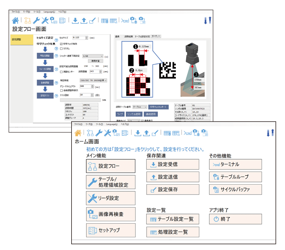 本製品で撮像した二次元シンボルに対してインラインで印字品質をチェックする機能を搭載しており、ISO/IEC 15415、またはISO/IEC TR 29158の評価パラメータを用いて印字品質を検証することで、