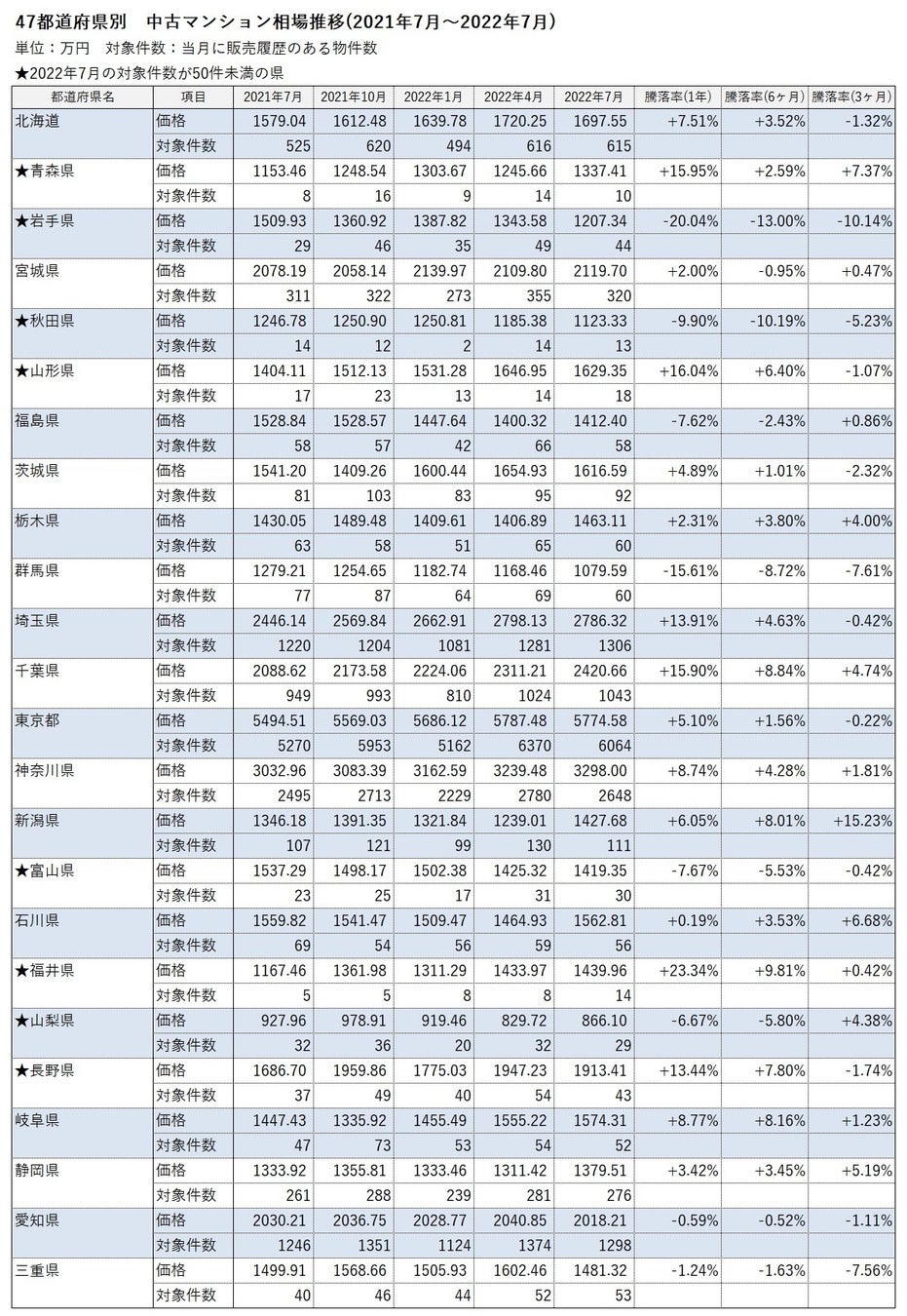 ■47都道府県 中古マンション相場推移(2021年7月~2022年7月)