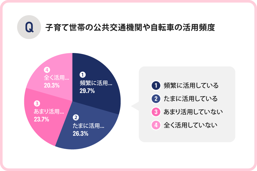 子育て世帯の公共交通機関や自転車の活用頻度
