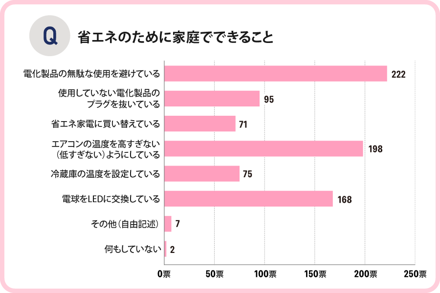 電化製品の無駄な使用を避けている 222票