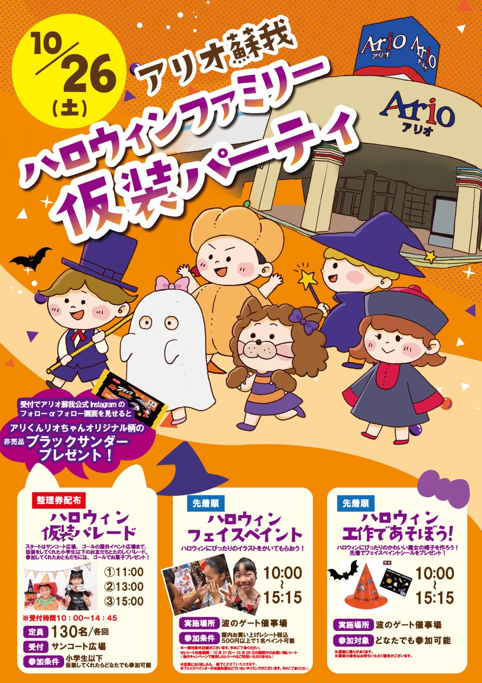 終了です。ご家族で楽しめるアリオ蘇我ハロウィンファミリー仮装パレードにぜひご参加ください。