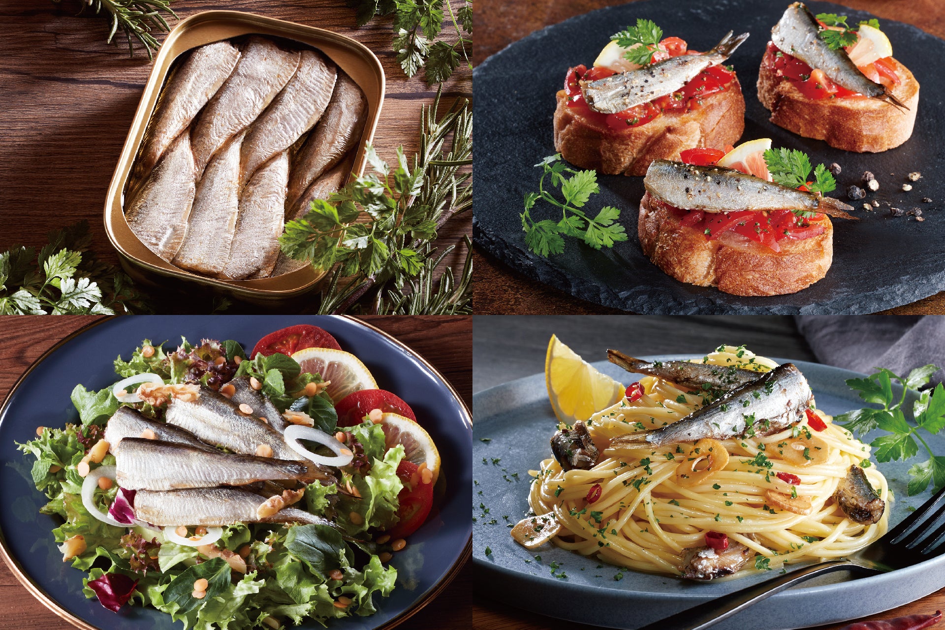 より手に取っていただきやすいパッケージを目指して、オイルサーディンを使用したメニューを加え、シリーズ展開しました。缶を開けて召し上がる際にも、特別感を感じられる上質な製品になっていますので、一度お試しください。