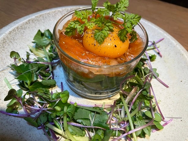栃木県産プレミアムヤシオマスとにっこり梨のユッケ仕立て