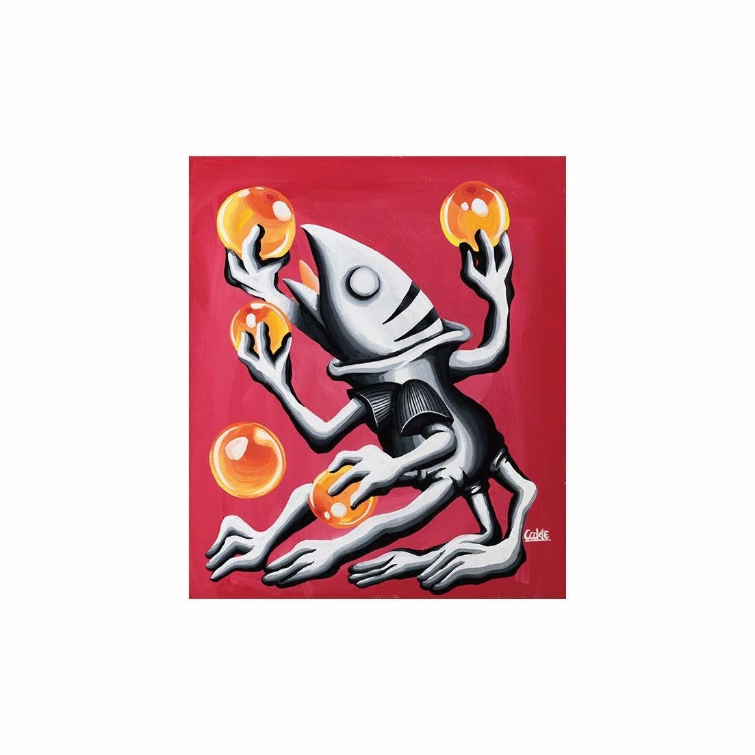 In 2019, his career as a painter started under the name of "COOKIE" at KOMIYAMA TOKYO. The strange characters depicted in the "Future Human" series, which is based on the fictional humans in the near future, have established a one-of-a-kind style as the "new language" of his artistic career. Aside from the work, COOKIE pursues his passion for comedy, rock-band activities, motorcycle collection, and mods fashion, and always creates new and unique works.