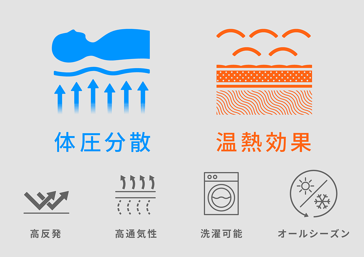 「Recovery Sleep」による温熱効果と東洋紡が開発した三次元網状繊維構造体の優れた体圧分散性を融合した究極のリカバリーマットレス