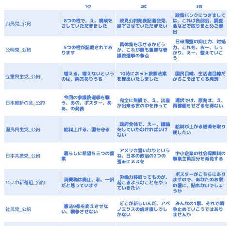 | 政見放送 | 主要政党の政見放送を分析し、その論理性を分析・比較します(5政党) | 7/7公開 |