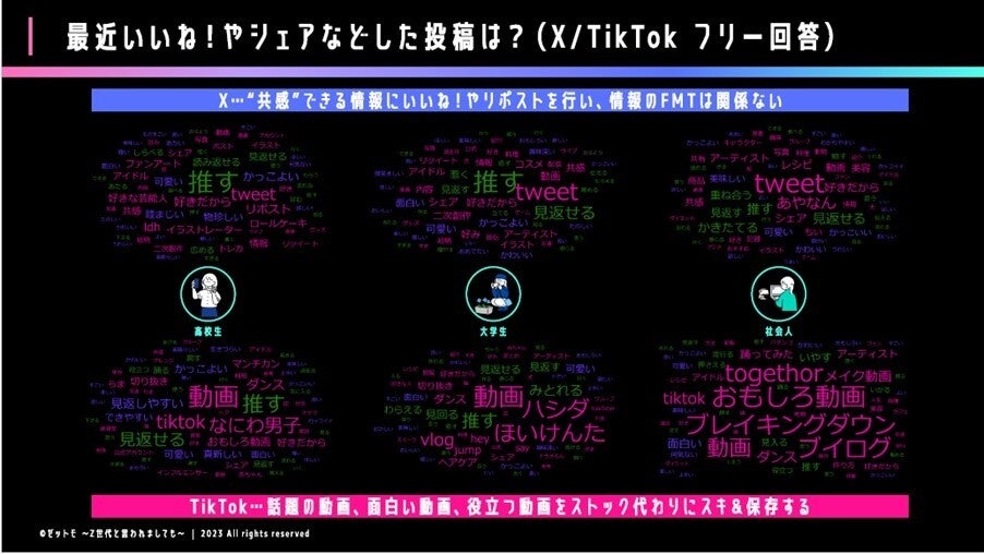 株式会社D2C R(本社:東京都港区、代表取締役社長:豊永 雅史、以下D2C R)は、Z世代の若者の生々しい実態を研究・発信し、マーケティングのヒントを生み出すプロジェクトユニット「ゼットモ~Z世代と言われましても~」(以下、ゼットモ)において、Z世代を「高校生」「大学生」「社会人」(男女1,000名)の3つに分類し、更にZ世代以上の幅広い年齢層である「上世代」(男女500名)を加えた総計1,500名に対し、それぞれの「SNS」や「広告」に対する意識調査(※1)を実施いたしました。