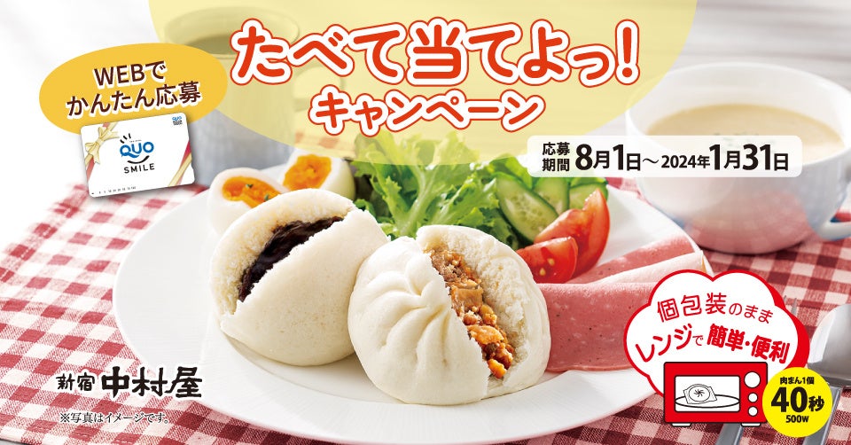 個包装の中華まんをご購入で最大10,000円分のギフトカードまたはデジタルギフトが1,000名様(抽選)に当たるたべて当てよっ!キャンペーン 2023年8月1日(火)から2024年1月31日(水)まで