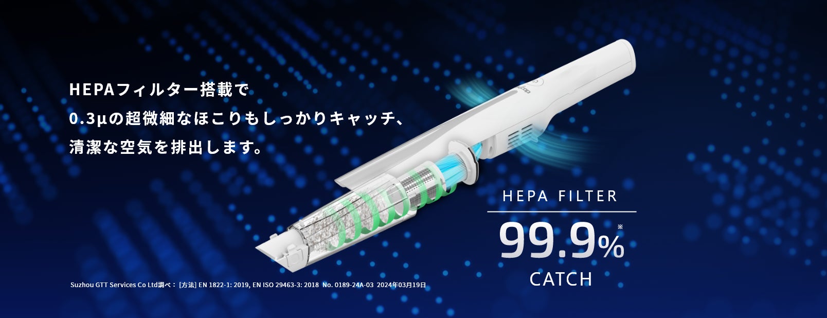 ブラシレスDCモーター搭載で、軽量・小型でありながら驚きの吸引力を実現しました。