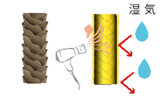 “ウェーブストッパー”が毛髪のダメージ部位を補修して毛髪強度を高め、日常の振動(例 歩行等)による髪の広がりを抑制します。さらに、毛髪表面を疎水性に傾けながら、水分コントロールを行うことで毛髪形状を安定化させ、外部からの湿気等をバリアすることで、うねりが生じにくい髪にします。