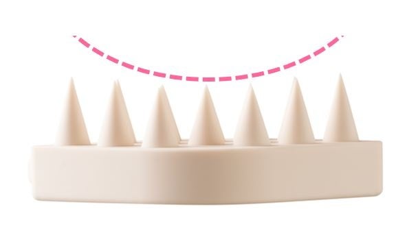 人の頭のカーブを考慮した複数のピンの長さ、しっかり頭皮毛穴を洗える太さと硬さ、本数にこだわりました。