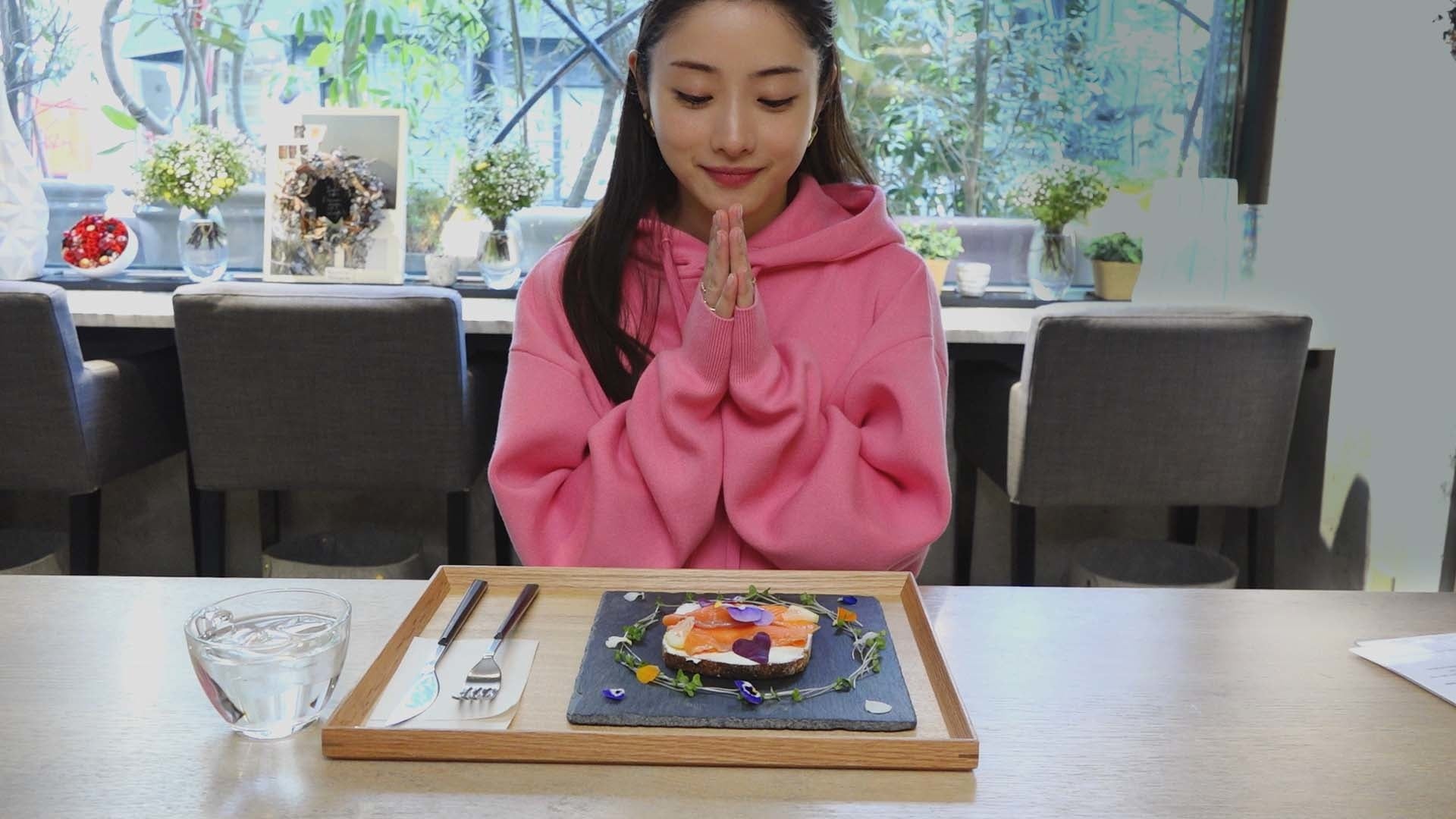 白無地Tシャツ専門店『#FFFFFFT(シロティ)』では、真っ白なTシャツのみが並ぶ店内にとても驚きながら、それぞれのTシャツの違いをお店の方に質問していました。撮影後も何着か試着をして、お気に入りのTシャツを購入。ご満悦な様子でした。 『LORANS.』では、食材にお花を使ったカフェのメニューに興味津々で、メニュー表を何度も熱心に見返す石原さん。店内の装飾やお花をとても気に入った様子でした。