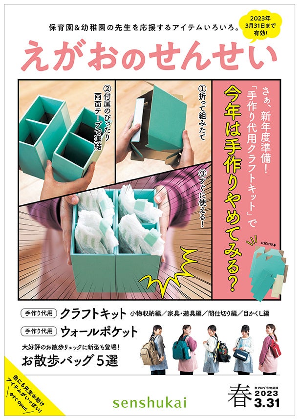 千趣会の子会社である株式会社千趣会チャイルドケアが、保育所の開設・運営をする中で得た保育現場の声と、千趣会の仕入開発力を活かし、「保育士ならではのお悩み」を解決するオリジナル商品を開発・提案することで保育に従事する先生たちへ“えがお”をお届けいたします。