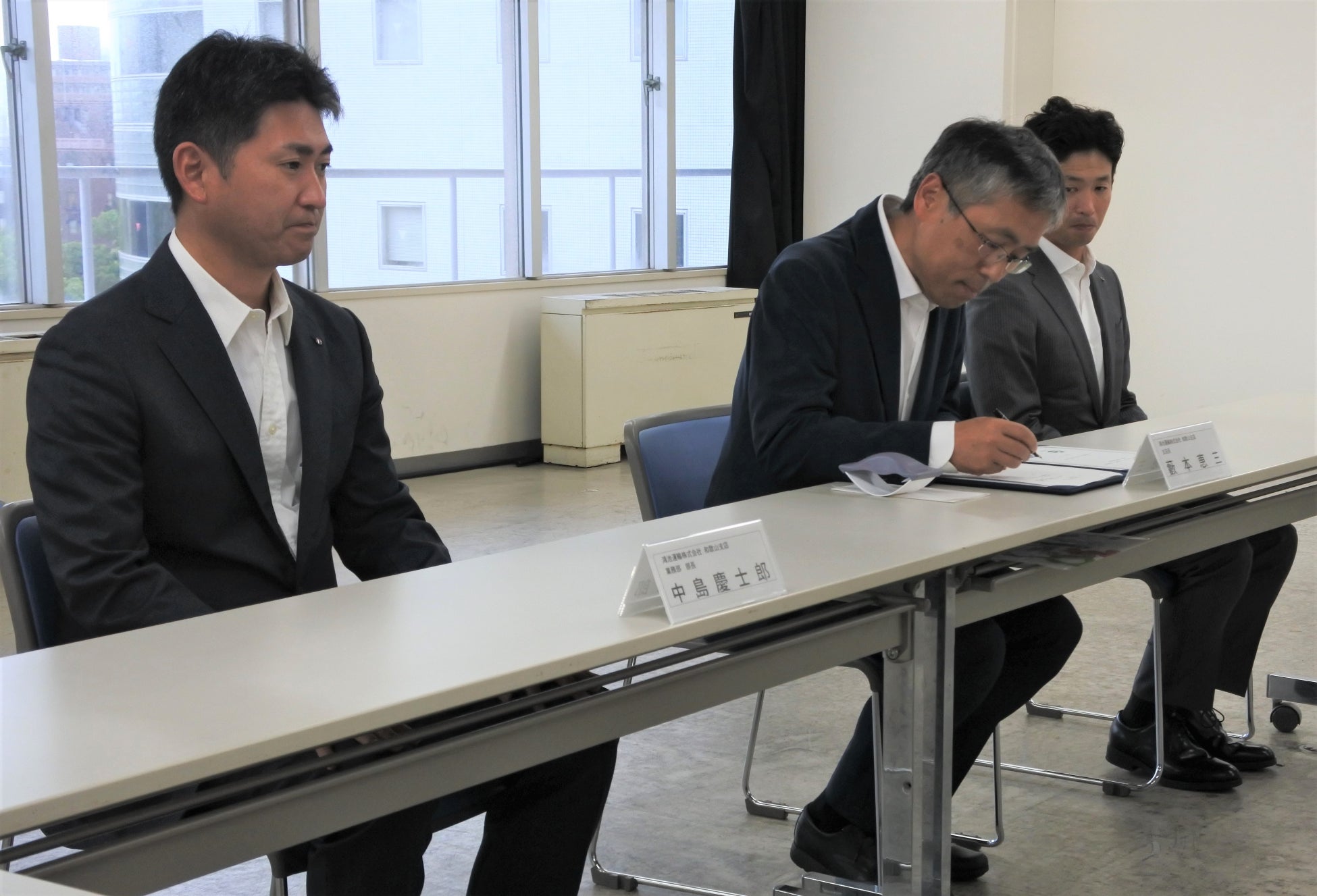 ■協定書に署名する様子(藪本支店長)