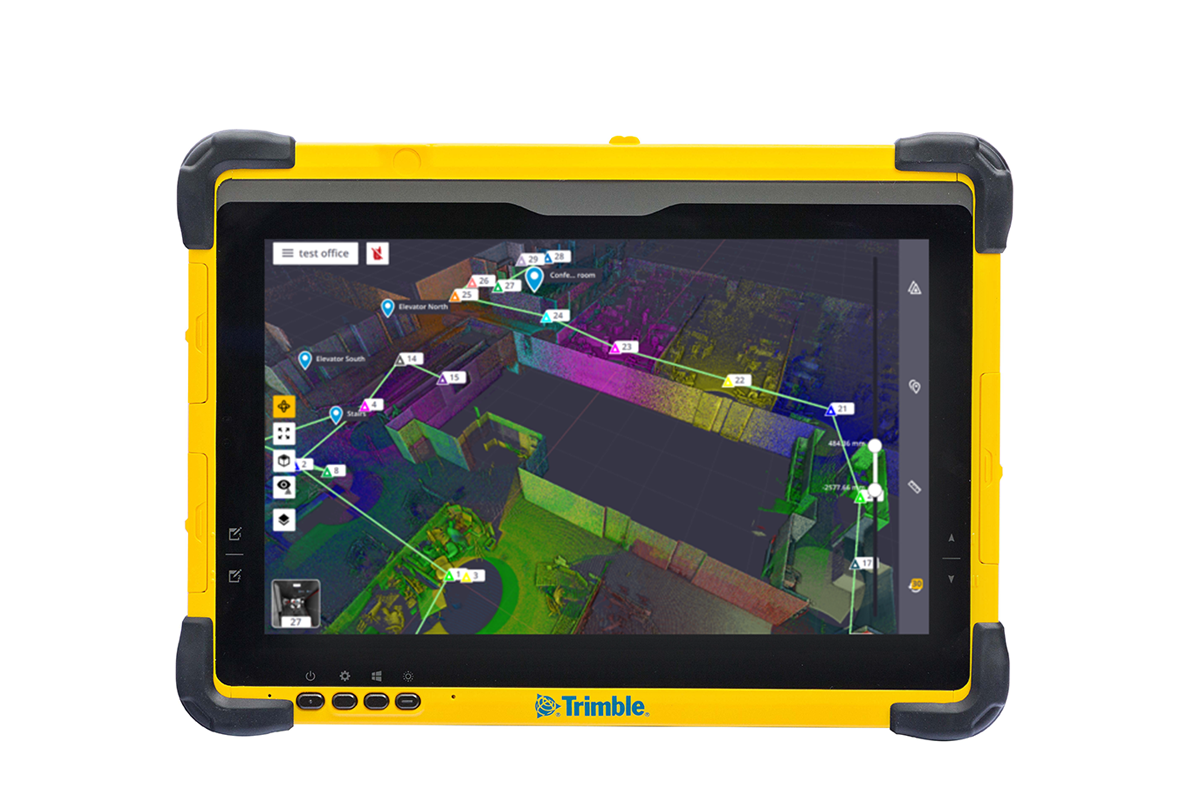 左:Trimble X12、右:専用タブレットPC「Trimble T10x」タブレット(Trimble Perspectiveソフトウェア標準搭載)