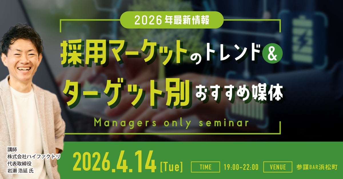 経営者コミュニティ「参謀」を運営する株式会社経営参謀(本社:東京都新宿区、代表取締役:新谷 健司)は、2026年4月14日(火)に、中小・スタートアップ企業の経営者や人事担当者を対象とした無料勉強会『【2026年最新情報】採用マーケットのトレンドと採用ターゲット別のおすすめ媒体を解説』を参謀BAR浜松町で開催いたします。累計2,000社以上のWebマーケティング支援実績を持つ株式会社ハイファクトリ 代表取締役の岩瀬浩延氏を講師に迎え、Indeed台頭による求人市場再編の裏側と、客観的データに基づく最適な媒体選びの極意を公開します。本イベントはコミュニティ会員限定ですが、1回に限り、一般の経営者様も体験参加いただけます。