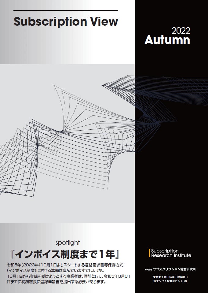 株式会社サブスクリプション総合研究所、「インボイス制度まで1年」をテーマにした機関紙「Subscription View」の第3号を発行