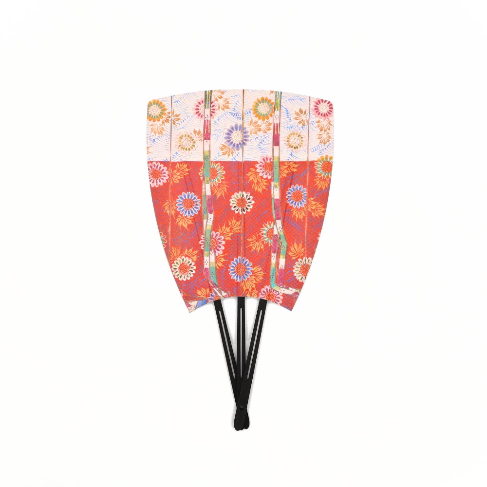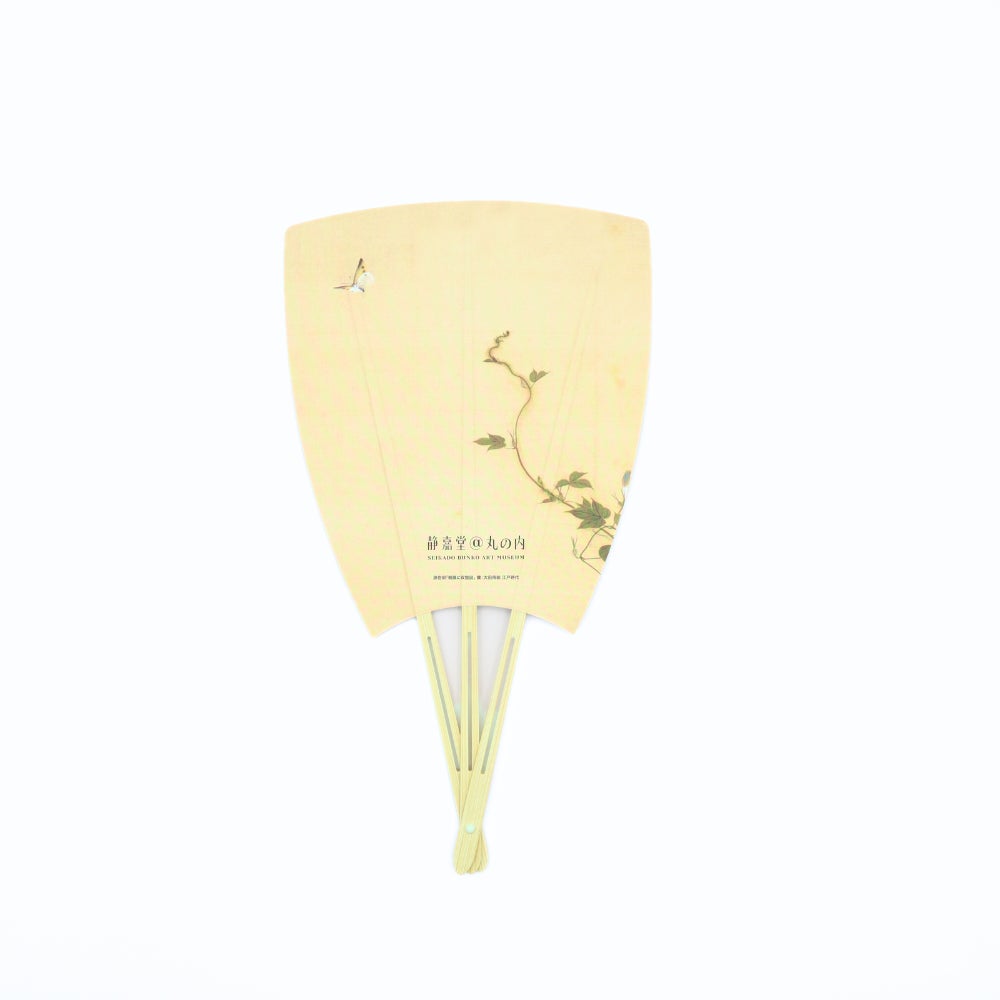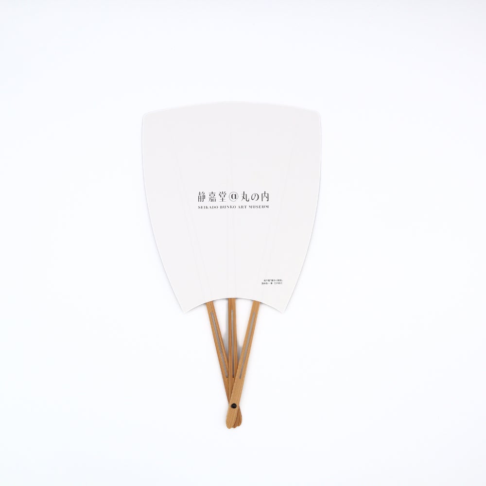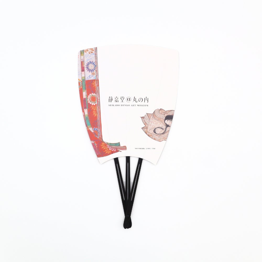 「時代不同歌合画帖」に描かれた、几帳から垣間見えたお姫さまの姿を生かして、表裏でお姫さまがちらりとのぞく、印象的なデザインのうちわに仕上げました。薄型でA4のクリアファイルにも収まるサイズなので、暑い夏に持ち歩くのにピッタリです。