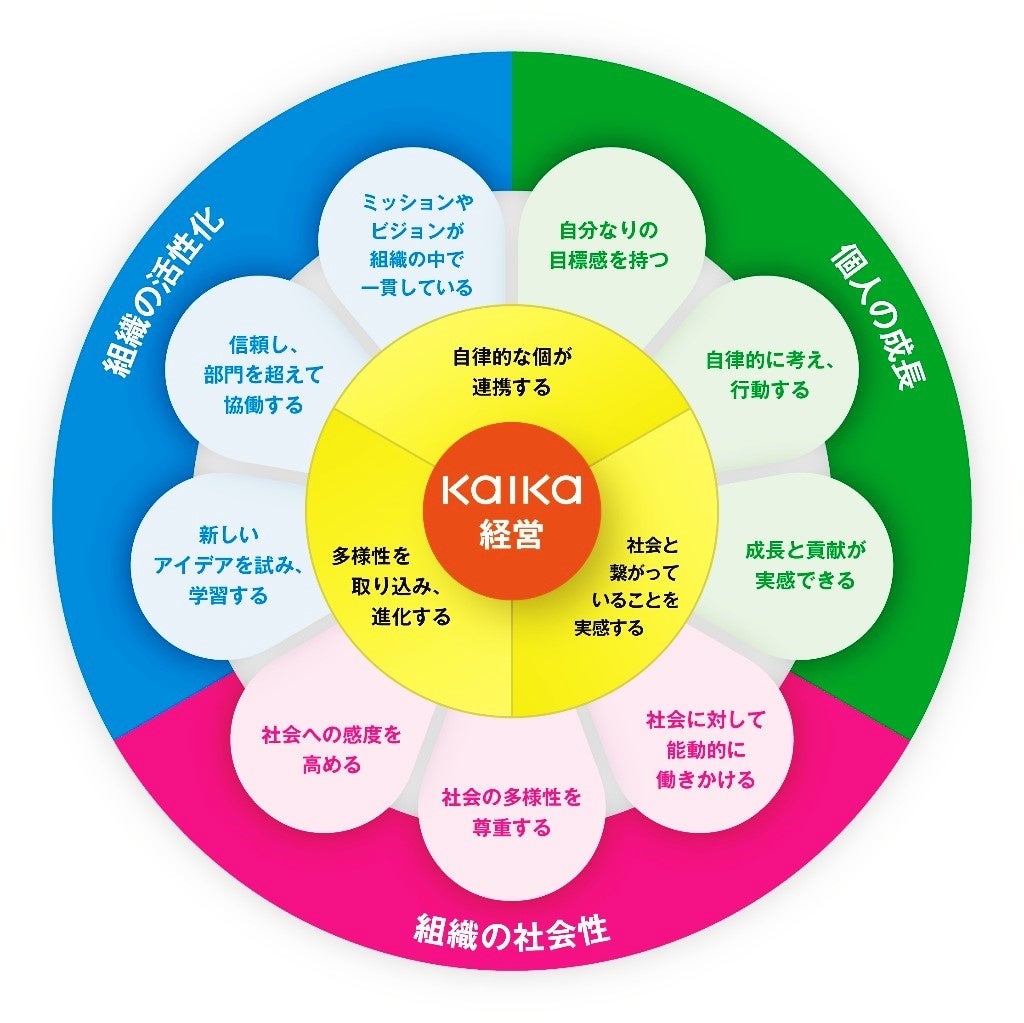 社会や経済が大きく変化し、また、人々の価値観が多様化・多元化する時代にあって、持続的に社会的価値を生み出すことのできる経営・組織づくりの在り方として、KAIKAの考え方が一層重要となっていると考えます。