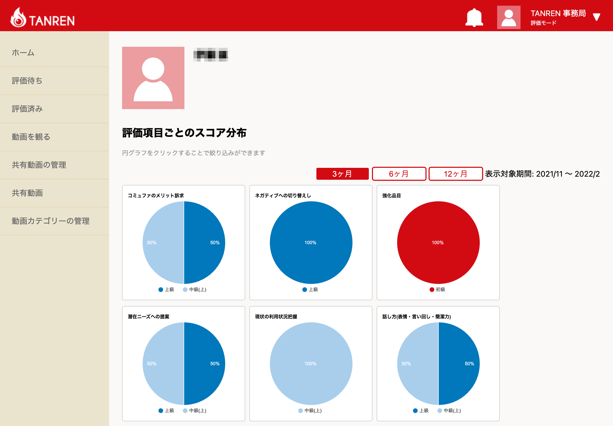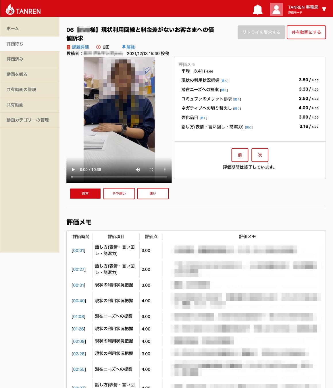 コロナ禍で集合研修が規制される中、代理店営業スタッフのセールススキルアップサポートとして、パフォーマンス評価アプリTANRENが採用され、クラウド上でのフィードバック環境が提供されました。