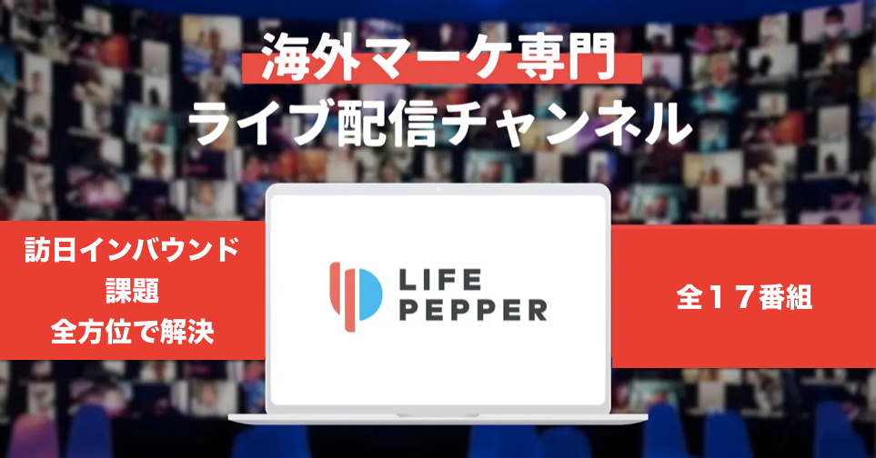 海外マーケティング支援数 1,000 社以上のLIFE PEPPER が運営する海外マーケティングの専門ライブ配信チャンネルにて、全方位でインバウンドの課題を解決する「360度インバウンド」放送決定