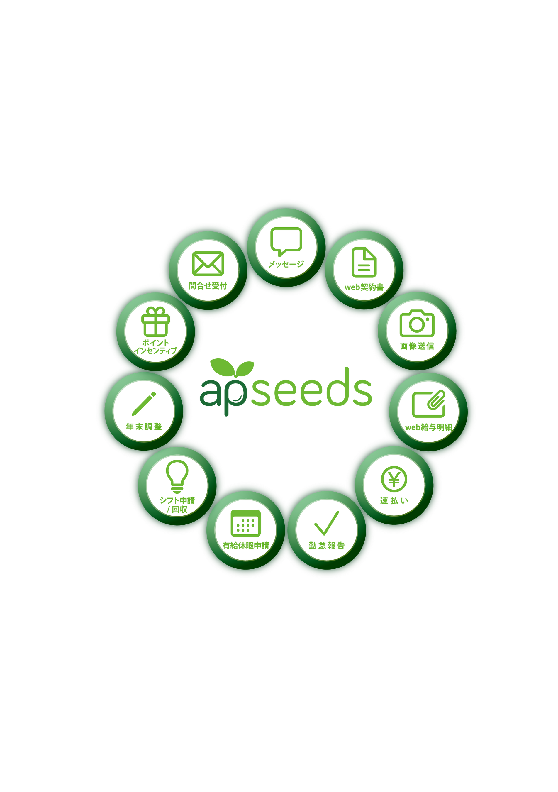 - 業務用スタッフマイページアプリ『apseedsポータル』(https://www.apseeds.co.jp/service/ap-portal/)