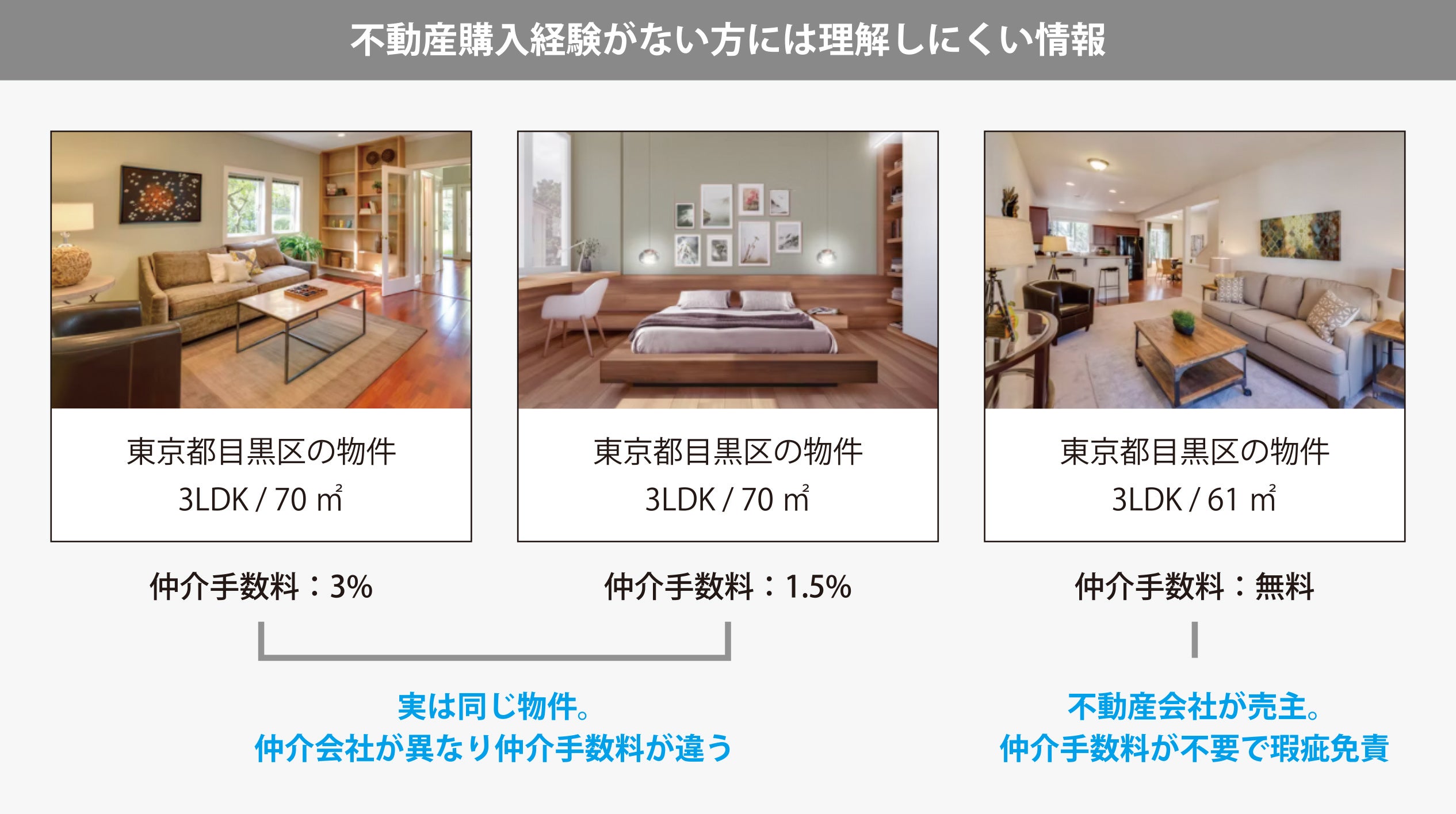 一方で、不動産会社が保有する⾃社売主物件(不動産会社が購⼊しリフォームを⾏って再販する物件)についても、リフォーム後に仲介会社にまかせて販売活動を⾏っているケースが多く、売主である不動産会社と購⼊者は、契約時に仲介会社に対して仲介⼿数料の⽀払いが必要となってきます。