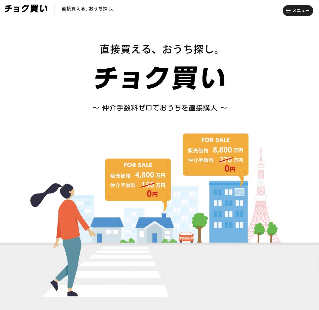 仲介⼿数料無料でおうちが買える、不動産購入プラットフォーム「チョク買い」サービス開始!日本最大級の不動産売却プラットフォーム「いえうり」と連動し、不動産売買の新しいエコシステムを構築へ