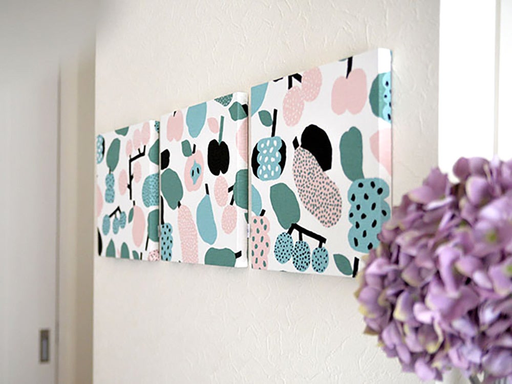 絵画のように壁を飾ることをイメージした、大小さまざまなサイズのファブリックパネルを多数ご用意しました。すべてのパネルには北欧輸入生地が使用されており、北欧ならではの色使いや質感をお楽しみください。