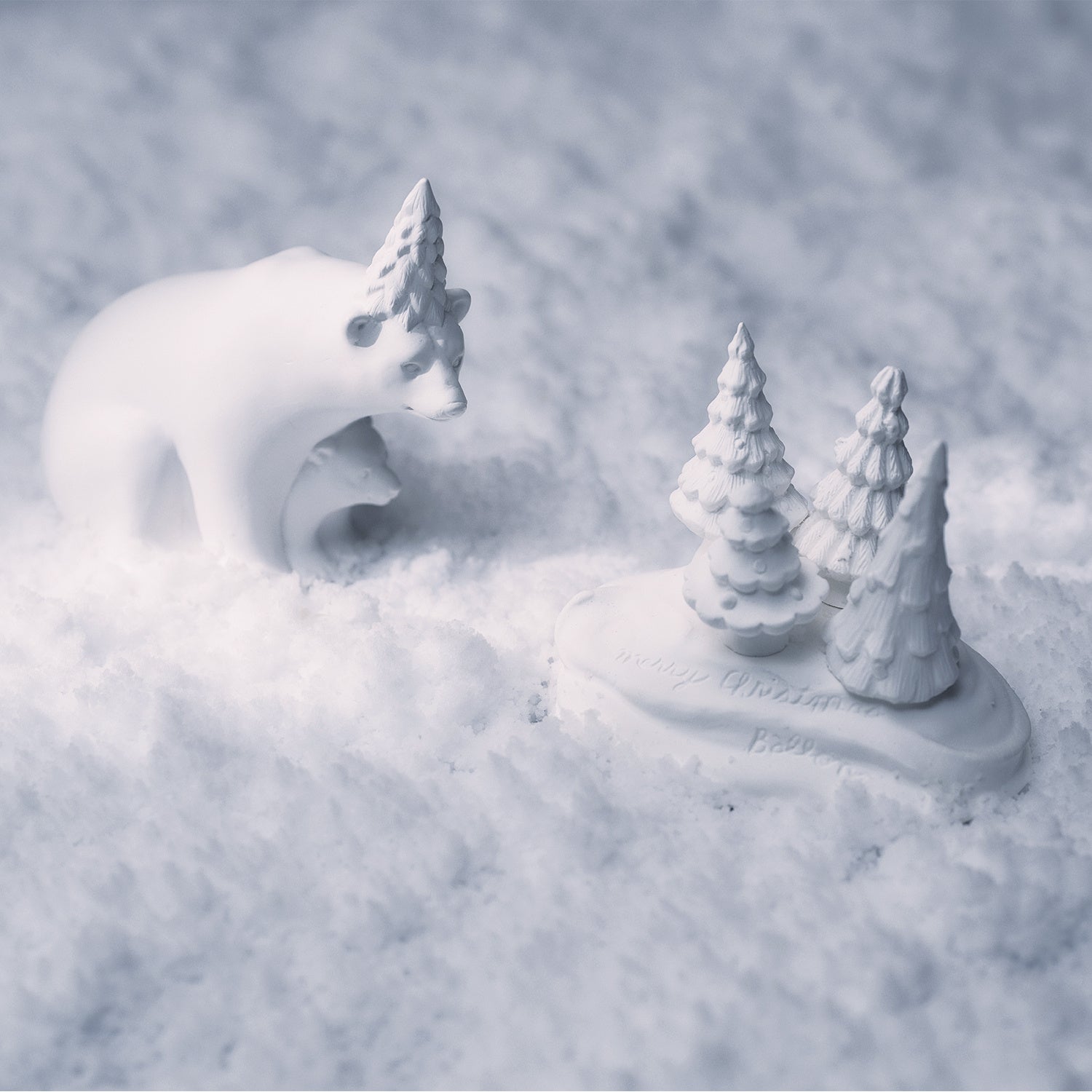 白の魔法にかけられてクリスマス気分なしろくま親子のアロマオーナメント。白のブレードつきのギフトボックス仕様。
