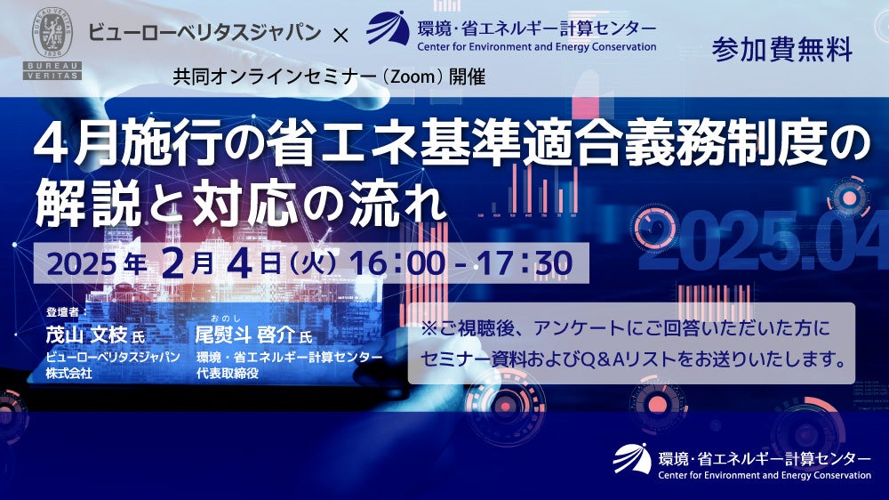 『4月施行の省エネ基準適合義務制度の解説と対応の流れ』2025年2月4日(火)共同オンラインセミナー開催 ― 法改正で「着工難民」発生も?! 省エネ計算会社・省エネ適判審査機関の現況と混雑予測等を解説