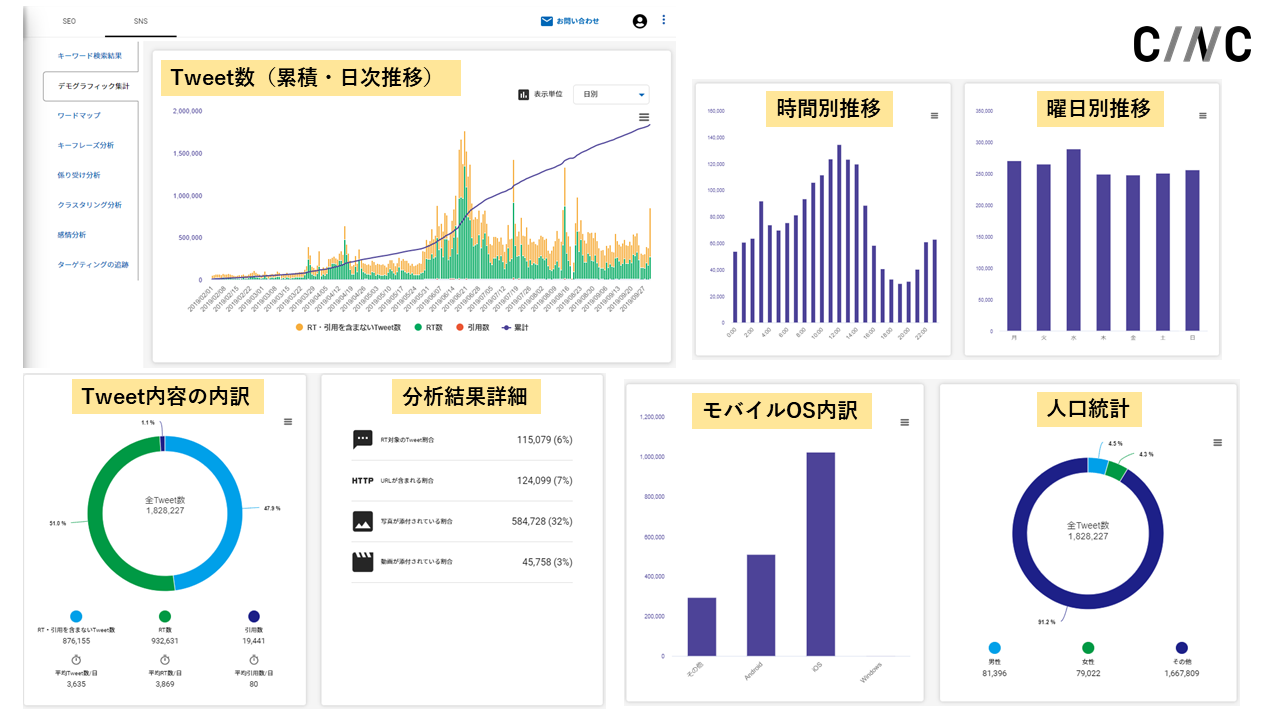 株式会社CINC(本社:東京都港区、代表取締役:石松友典 以下CINC)は10月1日、新サービス「Keywordmap for SNS」をリリースいたしました。CINC独自のデータ収集および処理技術を用いて、SNS上のビッグデータから顧客の声や動向を多角的に分析することができます。