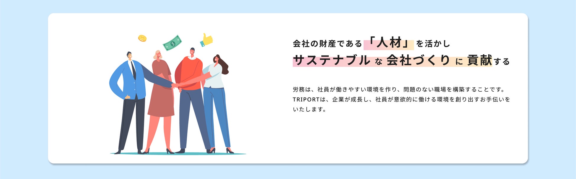 TRIPORTは、助成金制度をフル活用し、人材と企業が成長するサステナブルな会社づくりをサポートする「助成金コーディネート」サービスを提供しています。この度、当社が掲げるサービスコンセプト「助成金をフル活用して社員が輝くソーシャルグッドな会社へ。」に基づいて、デザイン、コンテンツ、ユーザビリティなどを見直し、全面リニューアルを行いました。
