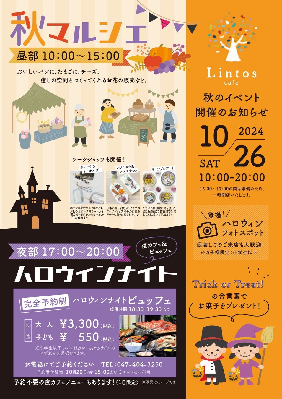 【誰もが楽しめる秋のひととき!】Lintos café(リントスカフェ)の『秋マルシェ』&『ハロウィンナイトイベント』開催