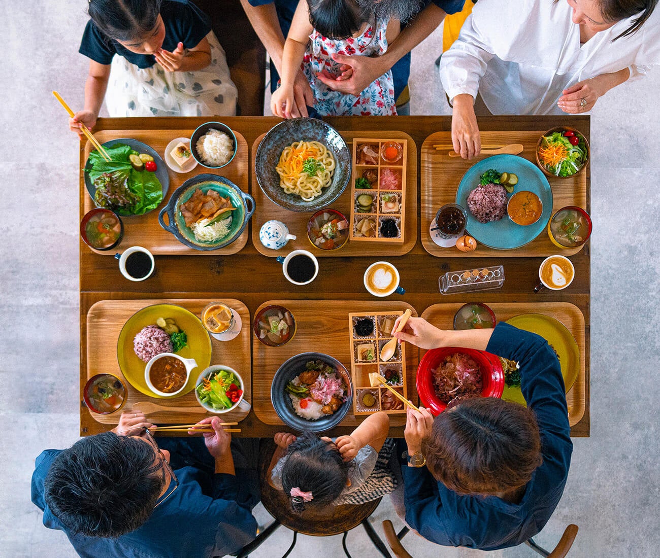 地元の新鮮な食材を使用したおいしい料理、パン、たまご、チーズなどをご用意しています。