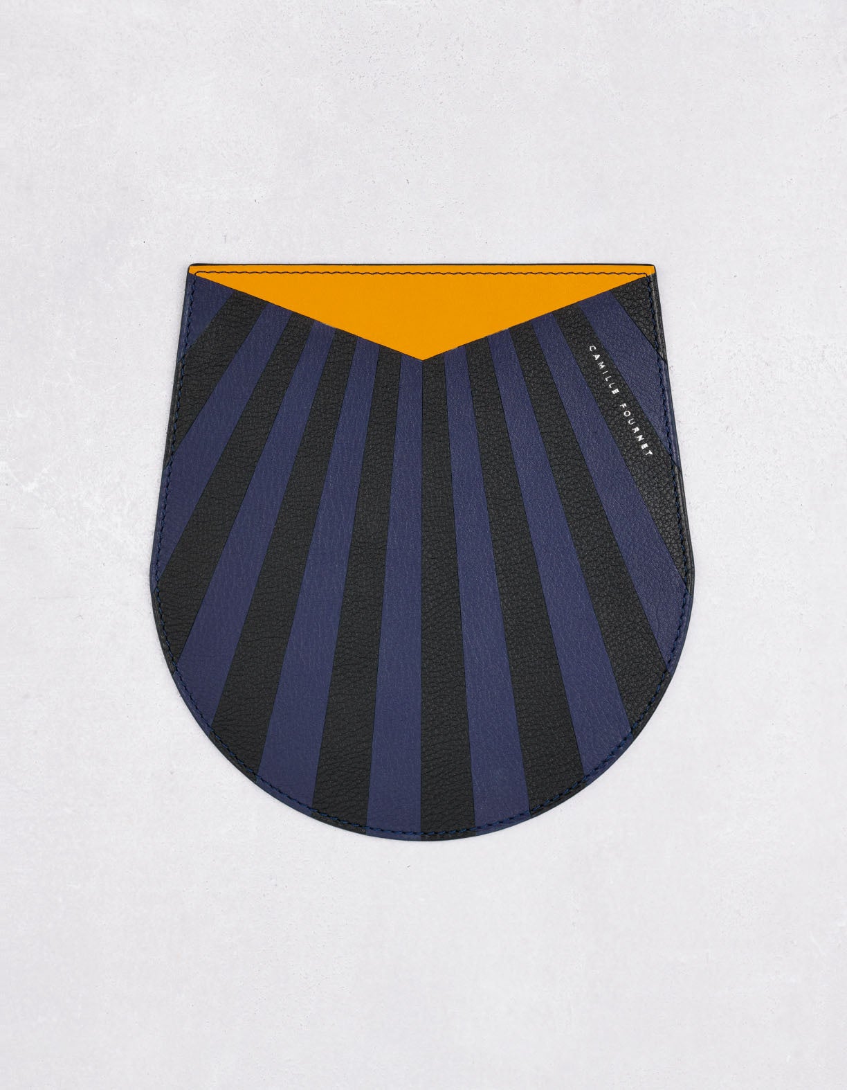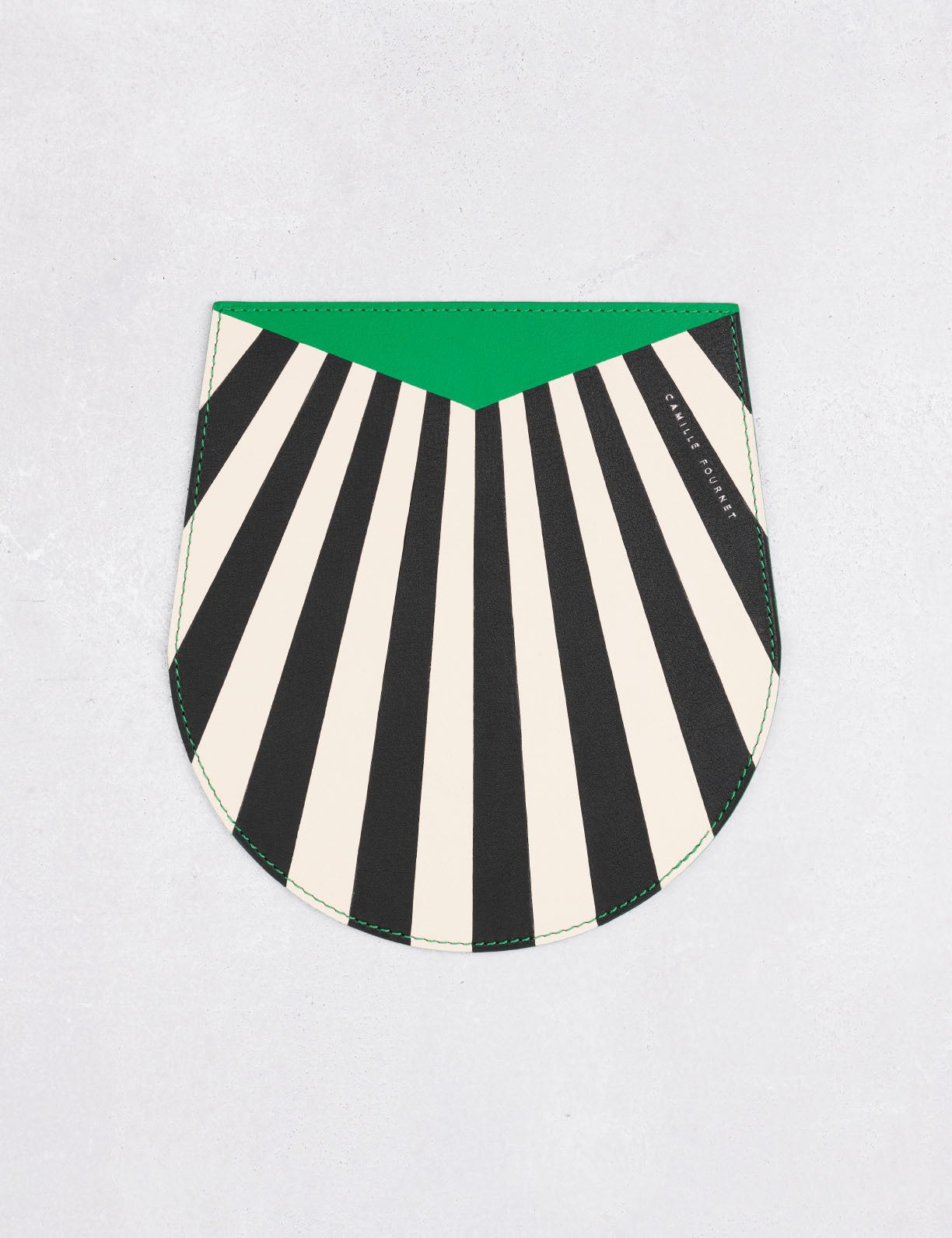 このサークルユニは、メゾンの特別な技術 フレンチ プリセからインスパイアされたデザインで、「マルケトリー」という、やはり職人の技が光る技法で仕上げています。 プリントのように見えるストライプは、極薄い2色の革を裁断し、組み合わせ、接着するという「マルケトリー」という技法による仕上がり。メゾンのサヴォアフェールを感じる上質なアイテムです。
