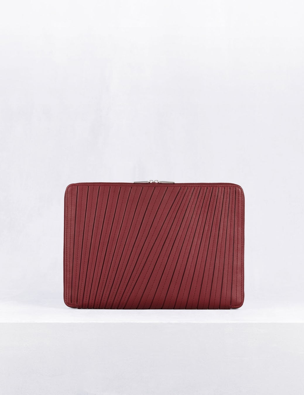 しなやかなカーフ レザーに、カミーユ・フォルネのアイコン的技術の1つ「フレンチ プリセ」を施し、メゾンの卓越したサヴォアフェールが発揮されています。ダブルファスナー仕様で、使いやすさも配慮されています。