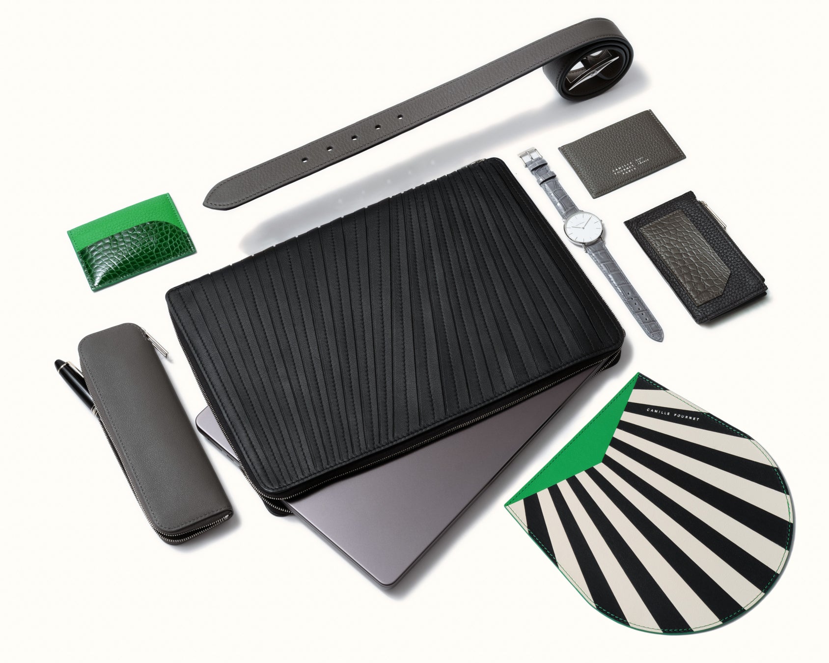 PCケース、ペンケース、マウスパッドなどをラインナップ、新しいカミーユ・フォルネの商品カテゴリーとして、ご提案します。ご自身のビジネスシーンを演出、または、スマートなギフトとして最適なアイテムが揃いました。 秋には同シリーズのメッセンジャーバッグや、コンパクトなビジネスバッグが登場予定です。