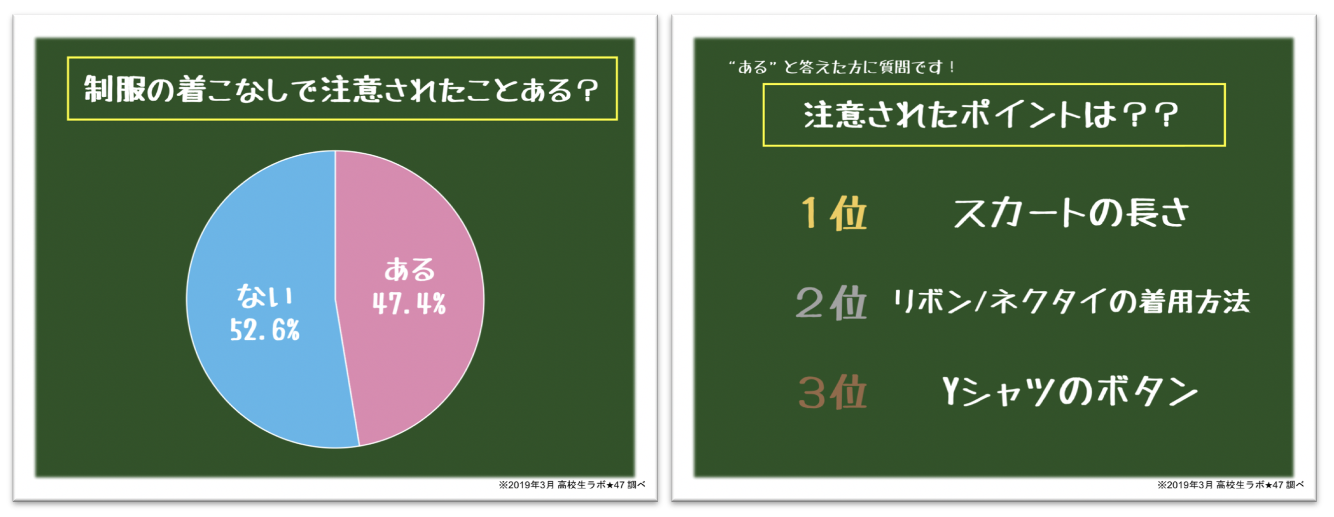 高校生ラボ★47では現役高校生を対象に2019年版制服の着こなし方を調査いたしました。