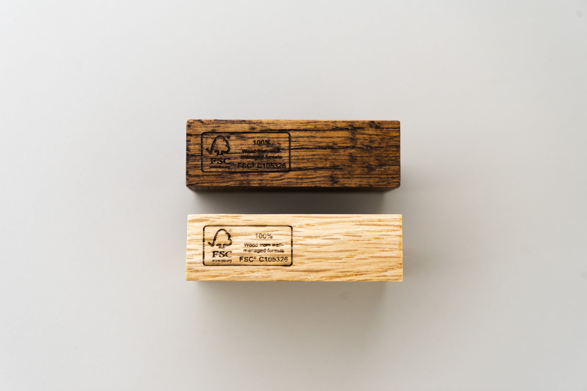 店舗のキャプションスタンドに山梨県産FSC®認証材のコナラを使用し、納品しました。