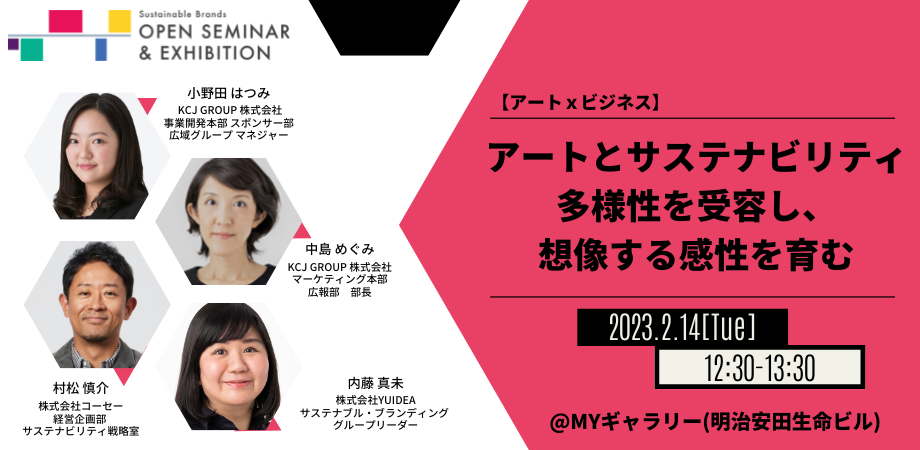 株式会社YUIDEA(本社:東京都文京区 代表取締役社長:細矢和宏)は、株式会社コーセーの村松 慎介氏とキッザニアを運営する KCJ GROUP 株式会社の中島 めぐみ氏、小野田 はつみ氏をパネリストにお迎えして、アートとサステナビリティ、ビジネスにおけるアート思考をテーマにしたセミナー内容を企画しました。