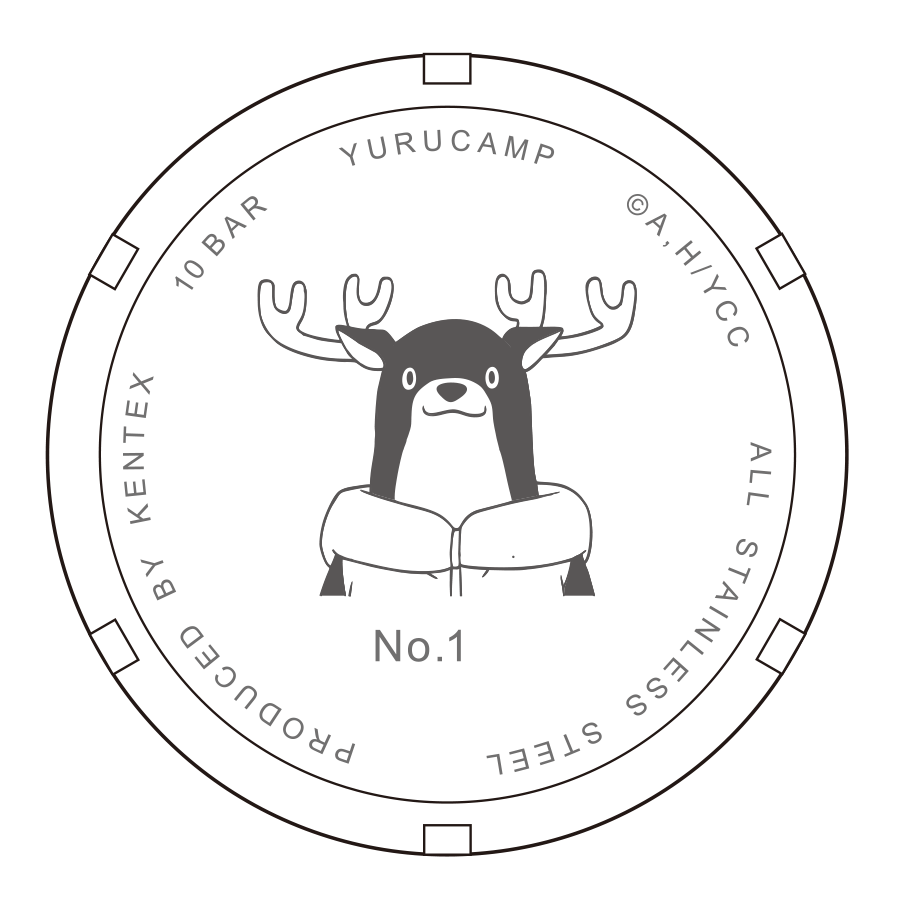 - 6時位置にはゆるキャンおなじみのロゴ、そして12時にはKENTEXのロゴを採用したことにより、 ストーリーを髣髴とさせるのはもちろんのこと抜群の視認性と操作性も実現。