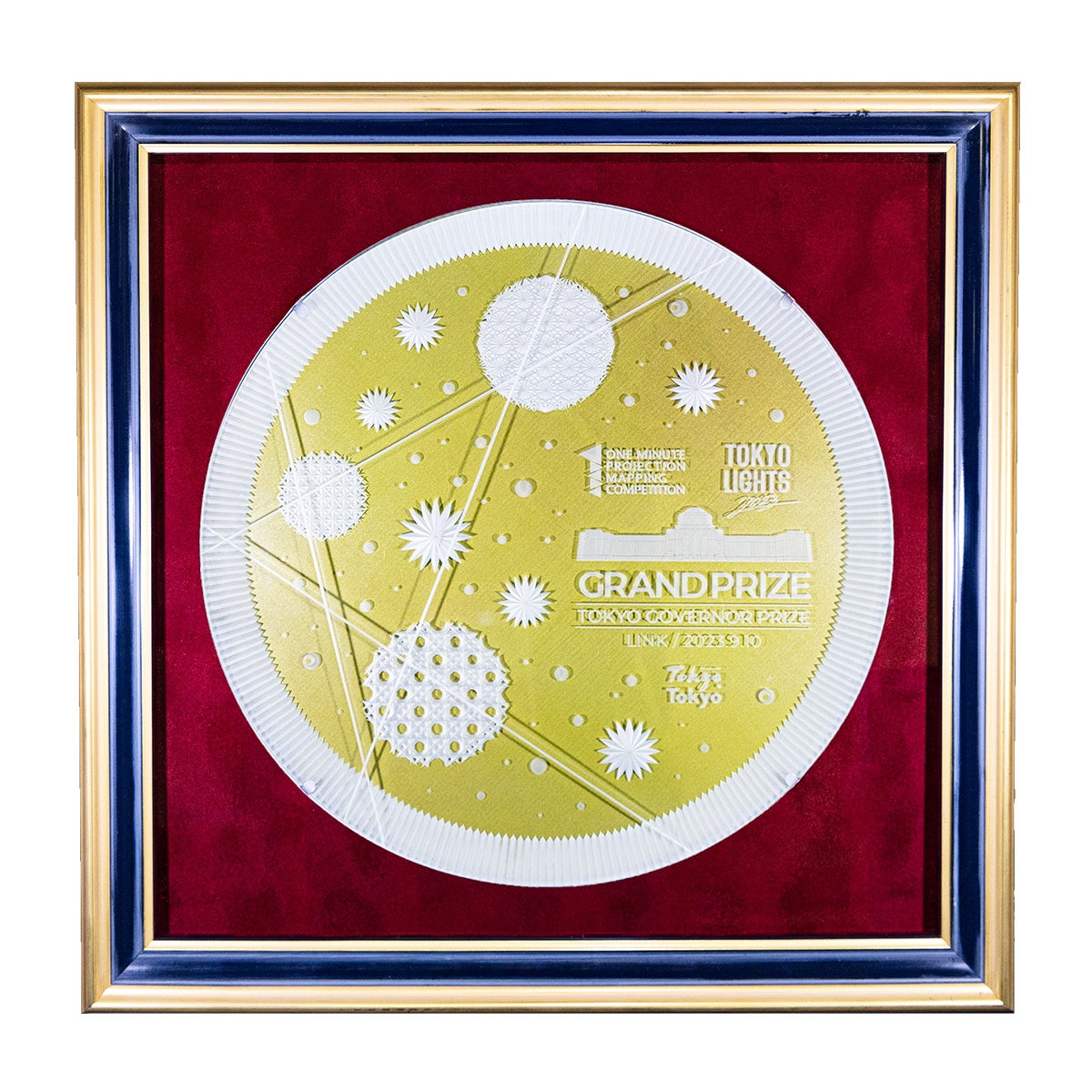 1minute Projection Mapping Competitionのプライズプレートは、ごく限られた人々だけが手にすることができる大会の栄誉の象徴とある特別なプレートです。その名誉ある賞にふさわしい価値を備えるべく、毎回こだわりを持って制作されています。