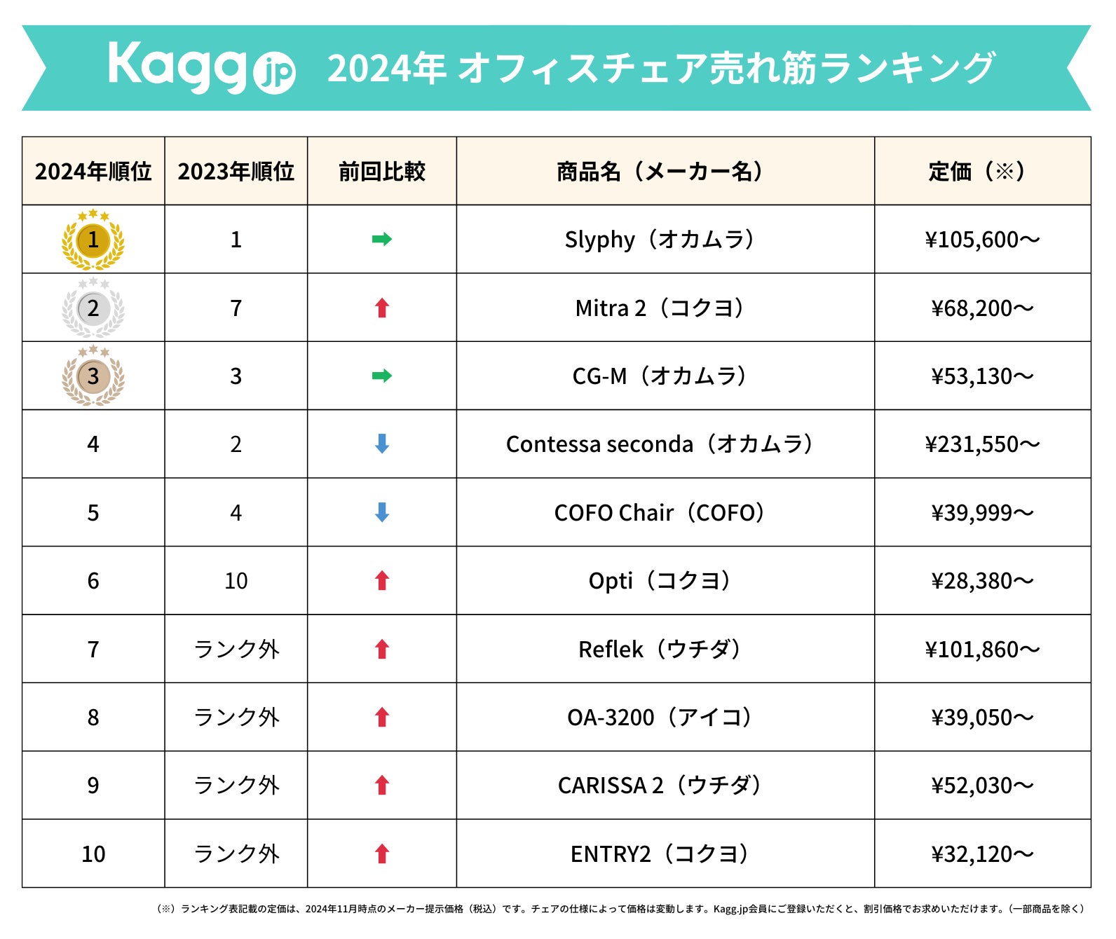 2024年「Kagg.jp」オフィスチェア売れ筋ランキング