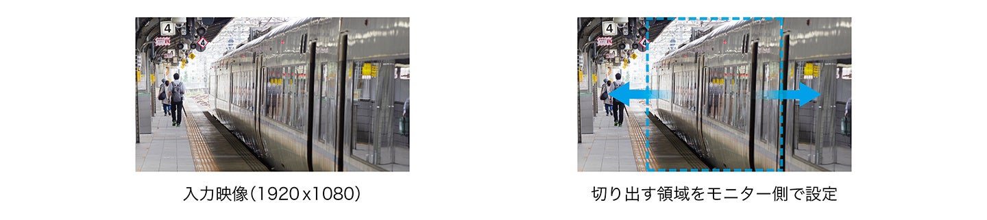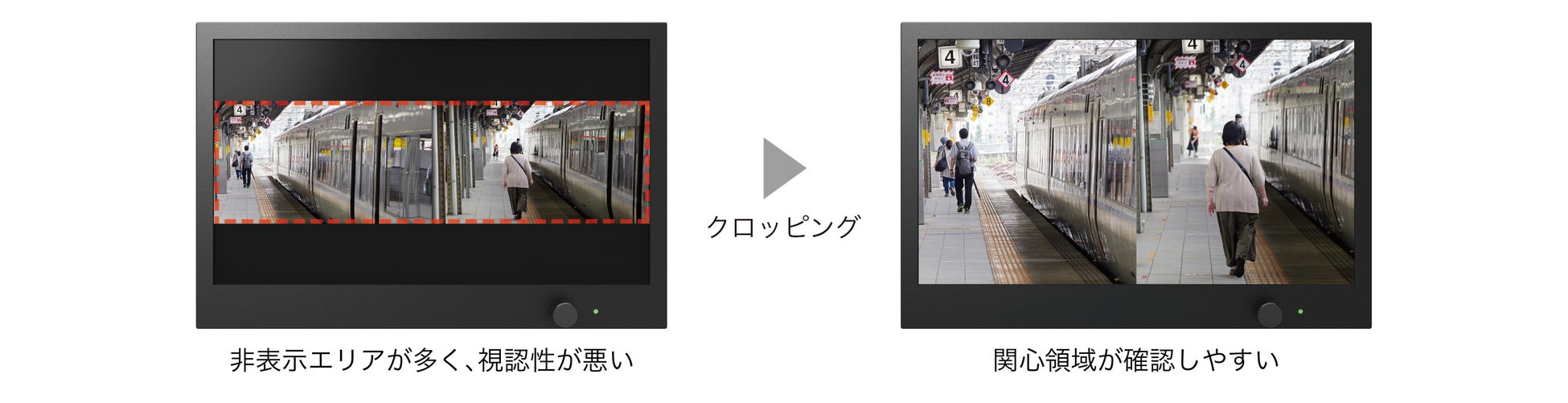 入力映像の任意の領域を切り出して表示できるクロッピング機能を搭載。カメラの画角を変更することなく、注視したい領域を的確に確認できます。PbyP表示時には、各入力でクロッピング位置を個別に設定可能です。